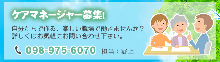 ケアマネジャー(介護支媛専門員)が、要介護者の心身の状況などを伺って、ご自宅において日常生活を営むために必要かつ、ご希望に応じたケアプラン(サービス計画書)を作成いたします。